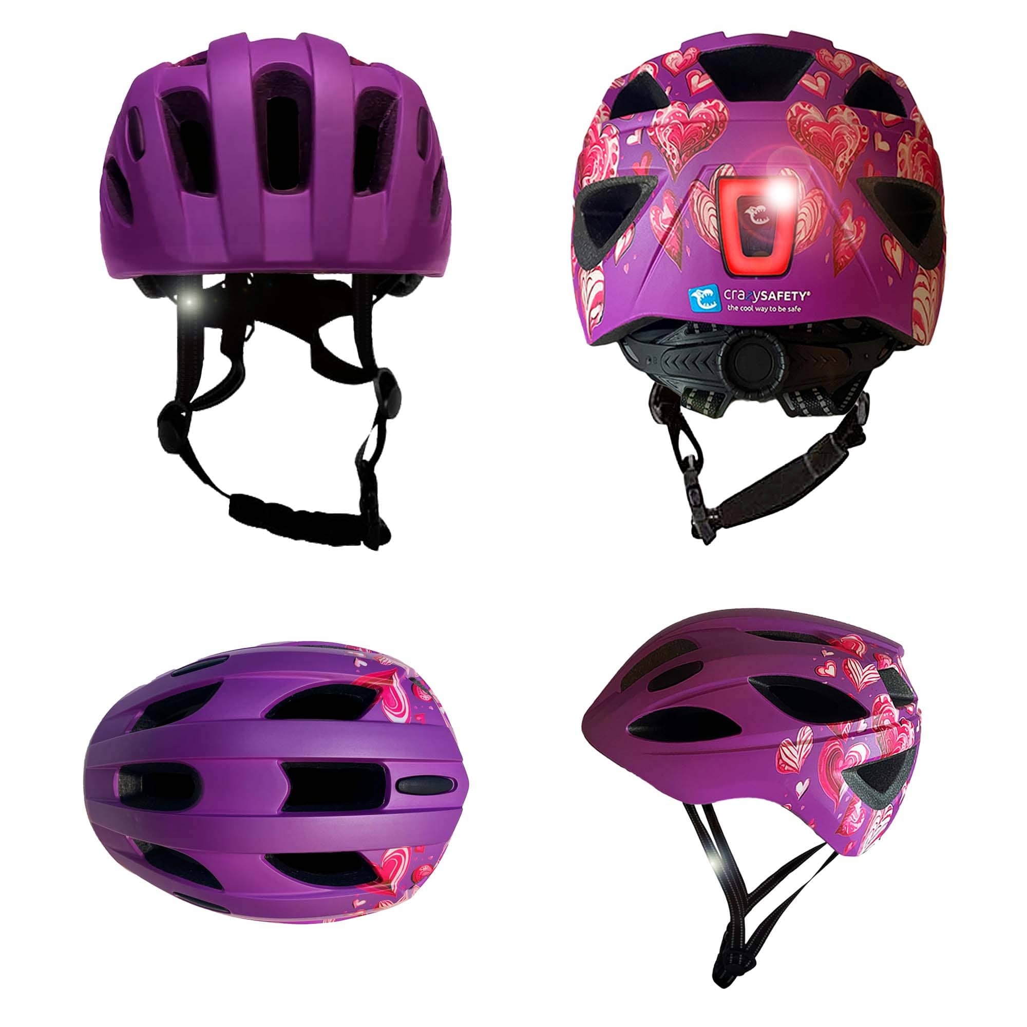 The Crazy Safety Heartbeat Stripes kids' helmets comply with EN 1078: 2012 + A1 safety standards and have passed rigorous safety tests. The helmet is equipped with a built-in USB-rechargeable LED light for extra visibility and protection.